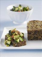 Three people who tested this meal said it seemed like they were eating meat. It certainly has the substance and the satiety that meat provides, but in my view is considerably more delicious. One serve provides over 6.5 grams of fibre and a third of the saturated fat of the same weight of steak. That aside, served with the zucchini and tomato sauce (recipe list) it's absolutely delicious.